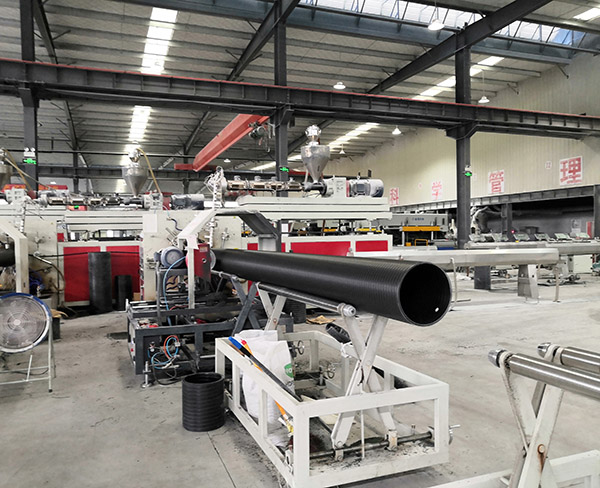 把聚乙烯(PE)生產(chǎn)成矩形管胚,然后經(jīng)過(guò)熱擠塑纏繞焊接成型。中空壁纏繞管采用纏繞工藝成型,在節(jié)省材料的前提下,提高了管材的環(huán)剛度。